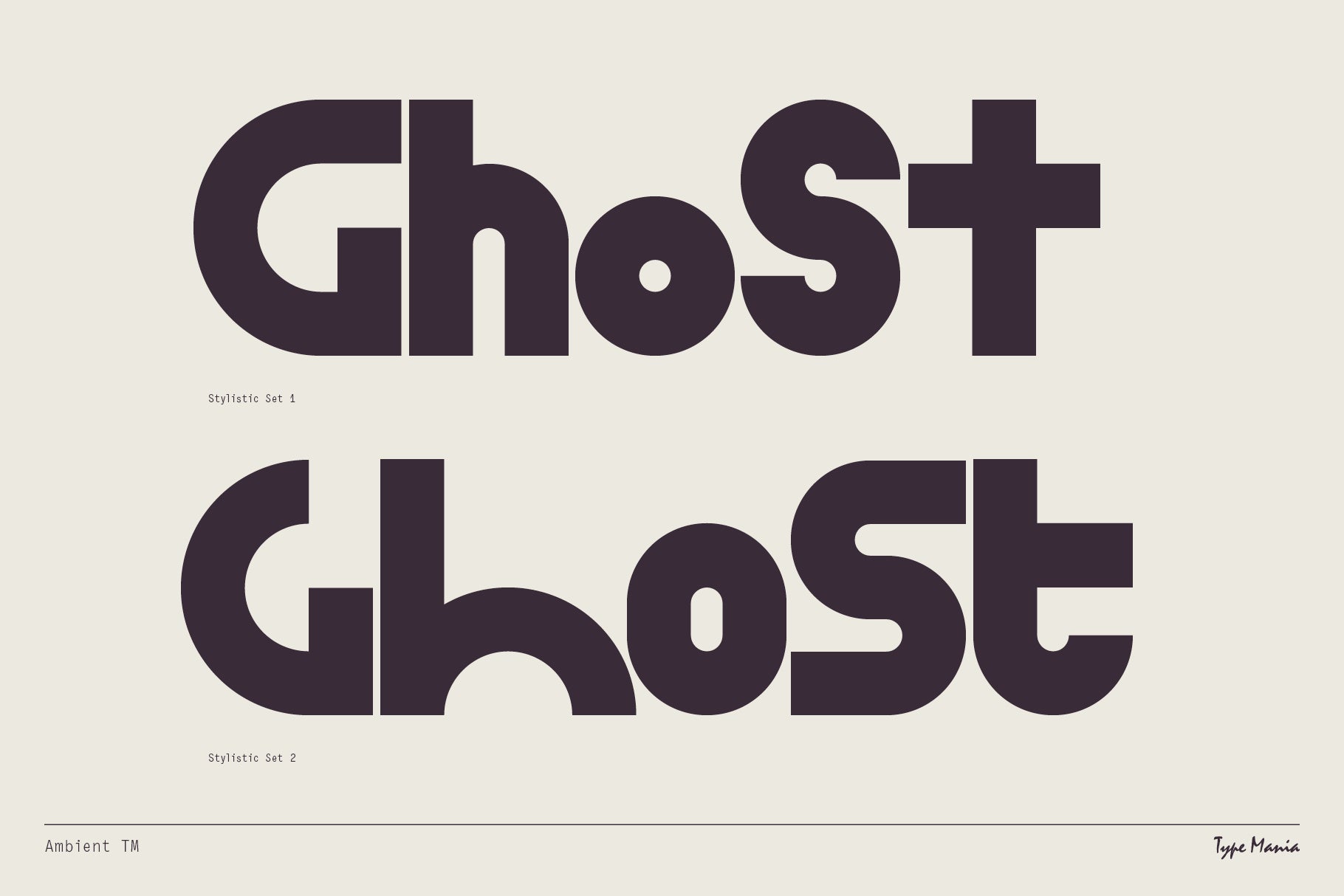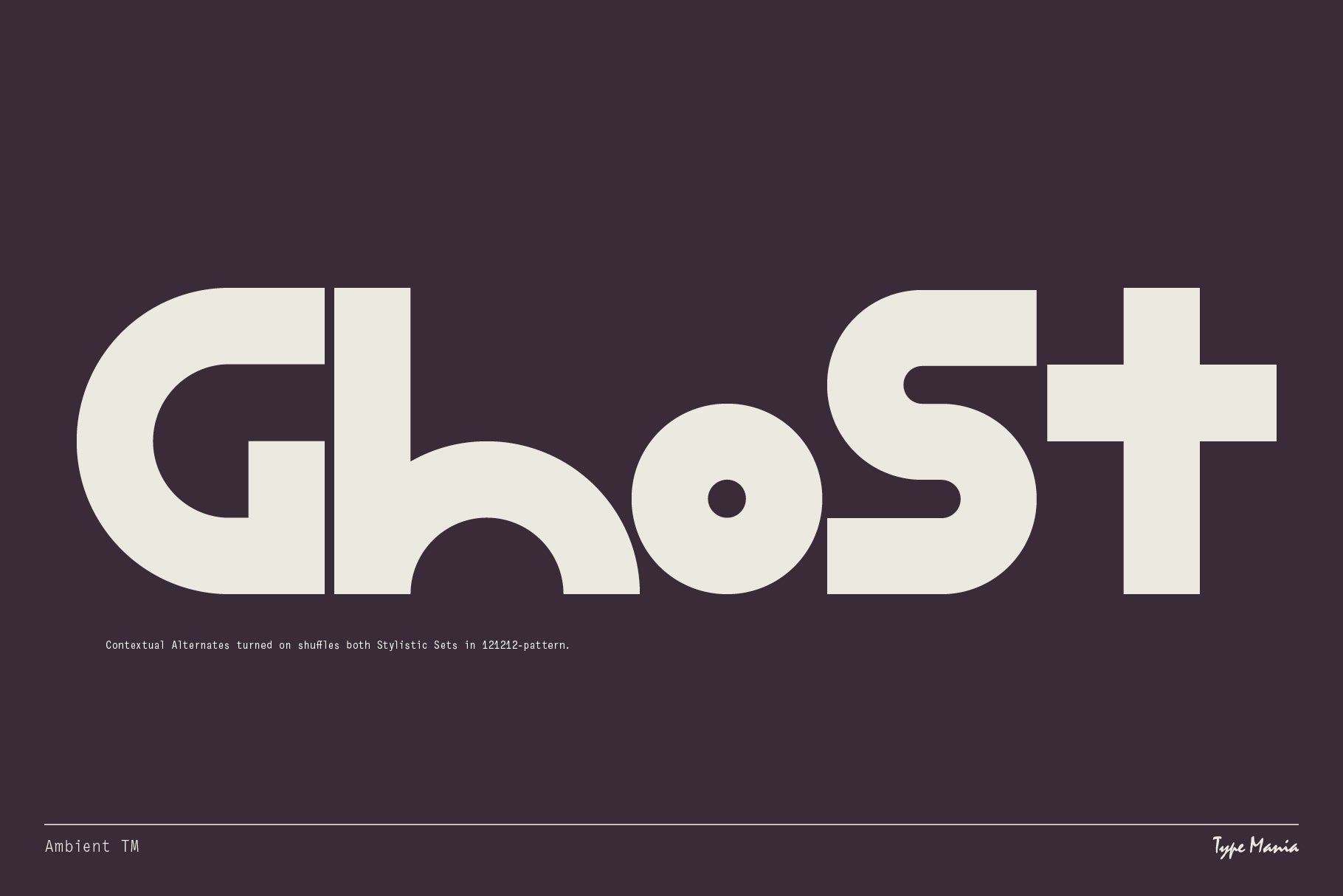 Ambient TM takes the rigid, hard-edge geometry and gives it life. Two stylistic sets rotate automatically as you type, shifting circles and squares into new alignments 👁️⃤