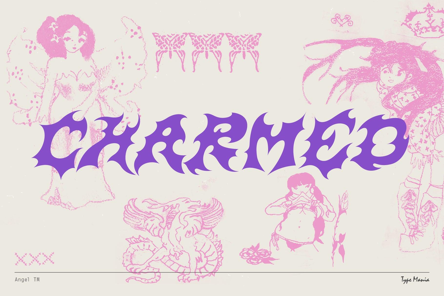 Introducing Angel TM, the capping Y2K tribal font that’s sharper than your favorite butterfly clips 🦋 Whether you're working on logos, apparel, posters or digital art, Angel TM is perfect for making your designs pop with a bit of that early 2000s edge ☆⋆。𖦹°‧★