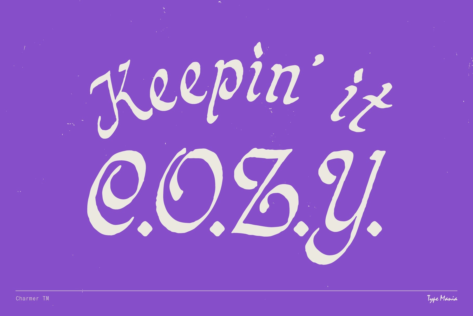 Charmer TM is a homebaked calligraphic font with a personal feel. Good for your bedroom pop band just about to make it big...