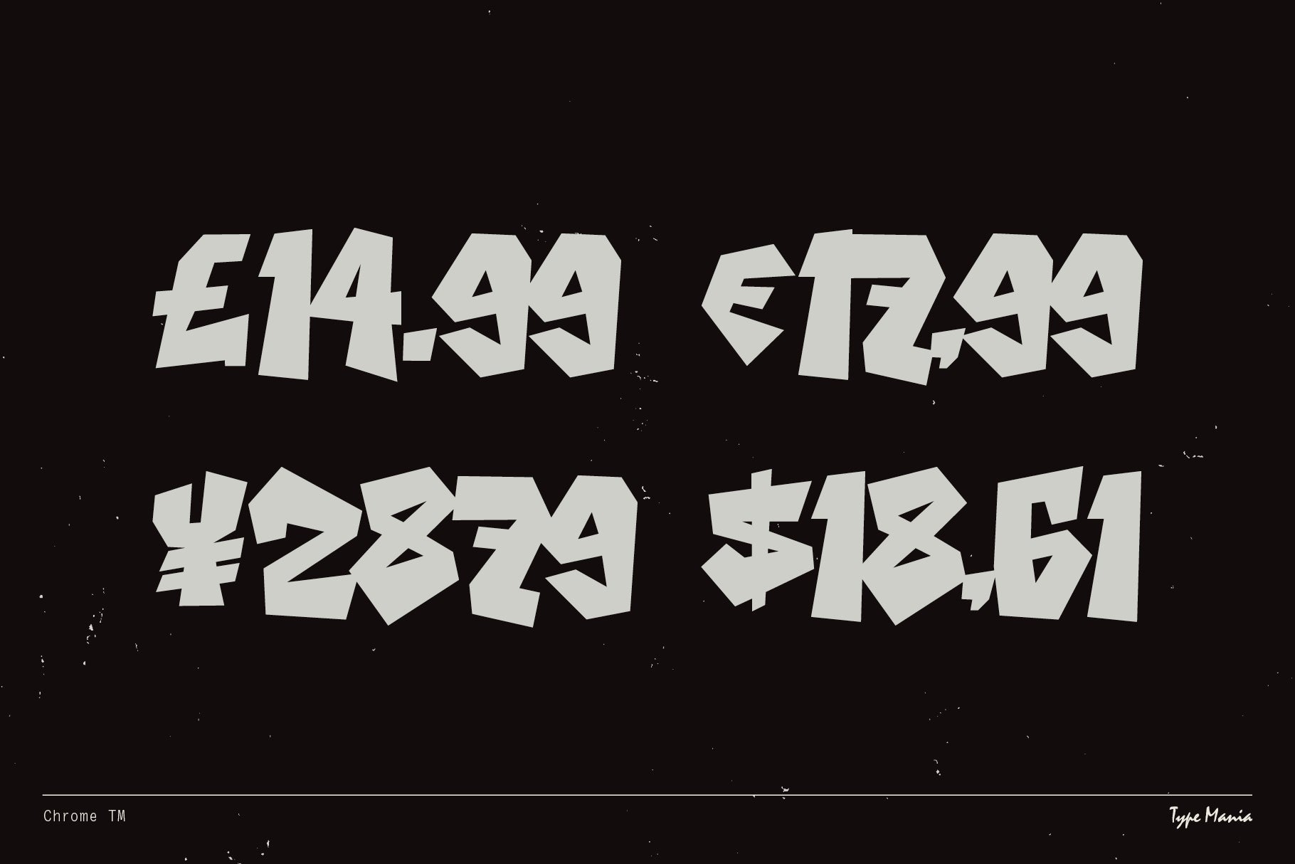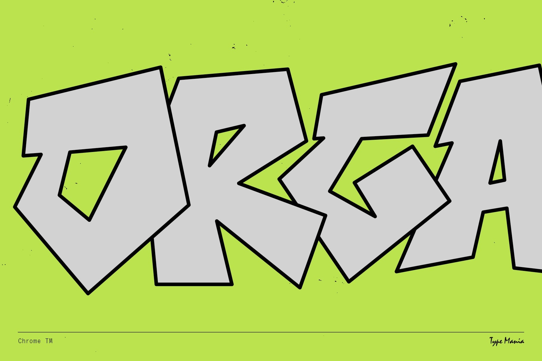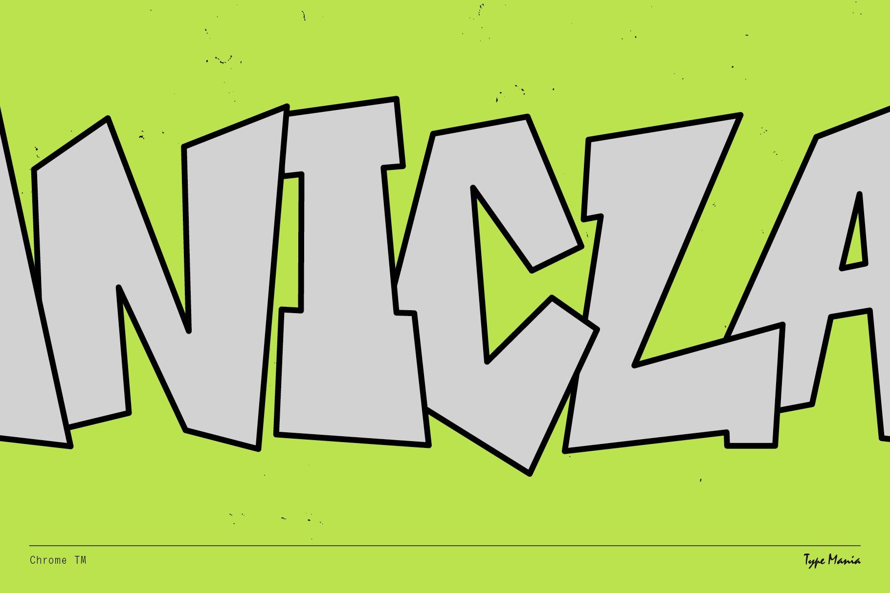 Here it is: Chrome TM – a bold, urban typeface inspired by graffiti lettering. Good for branding, posters, album covers, apparel... what have you. Give it a try and see if it works for your project.