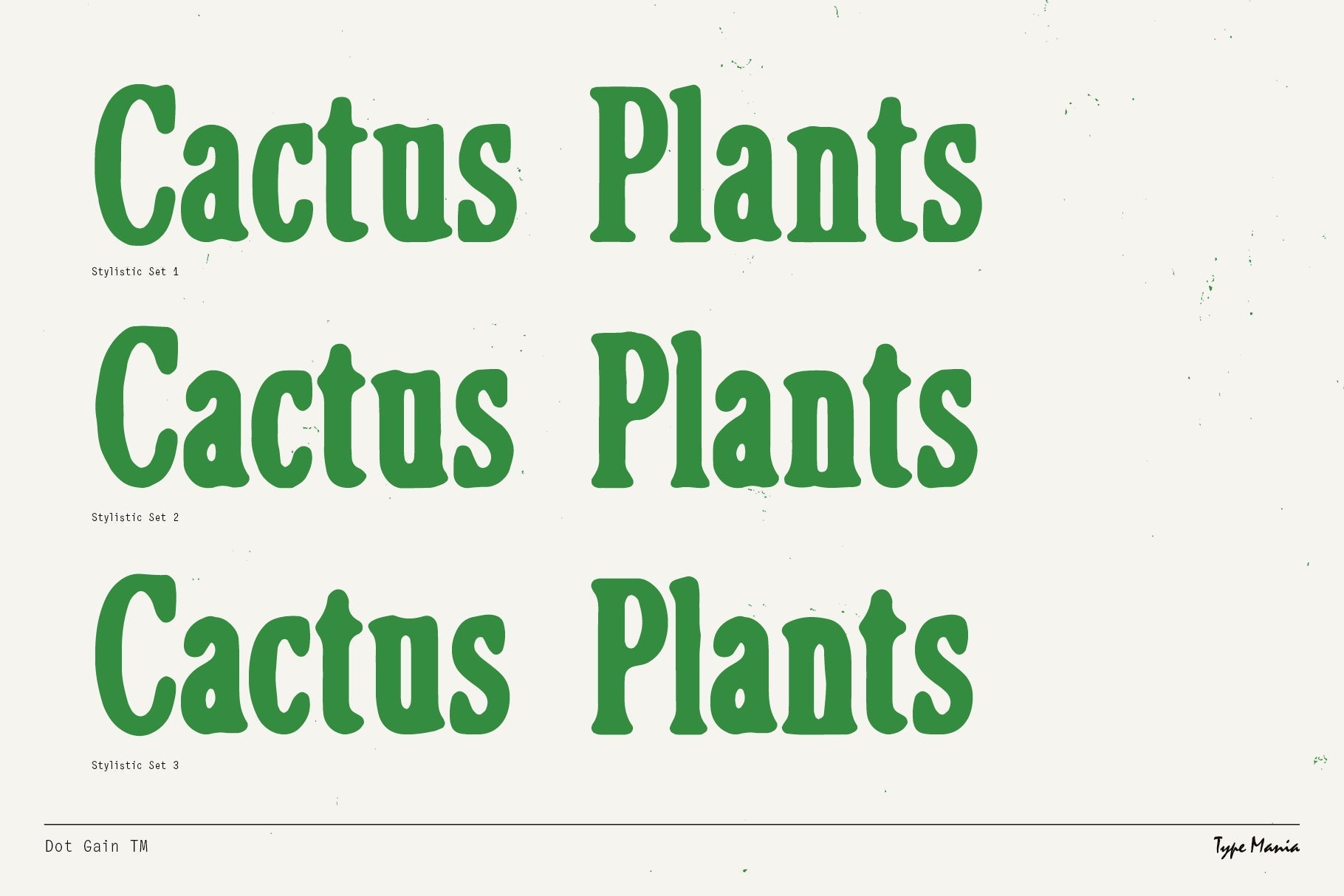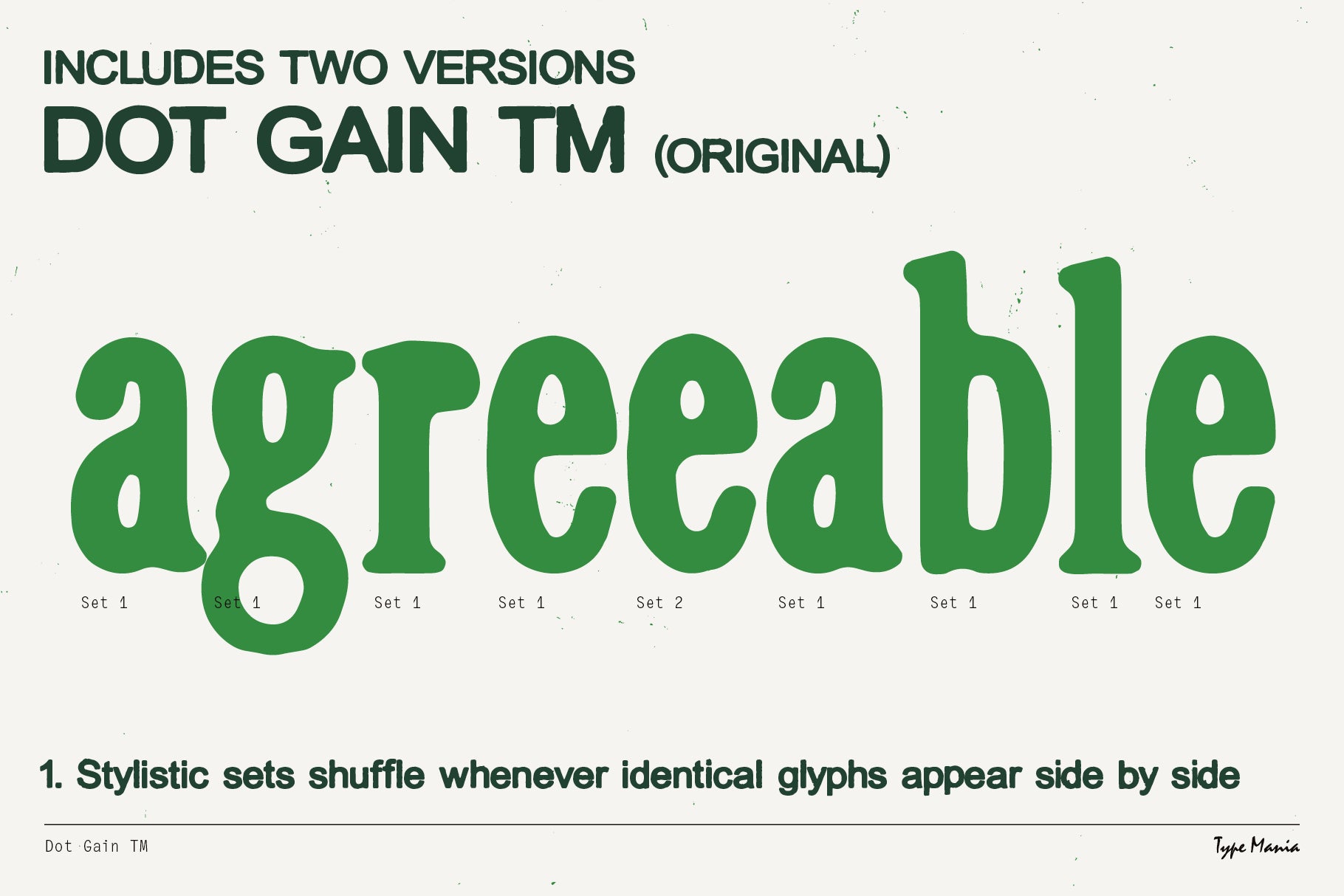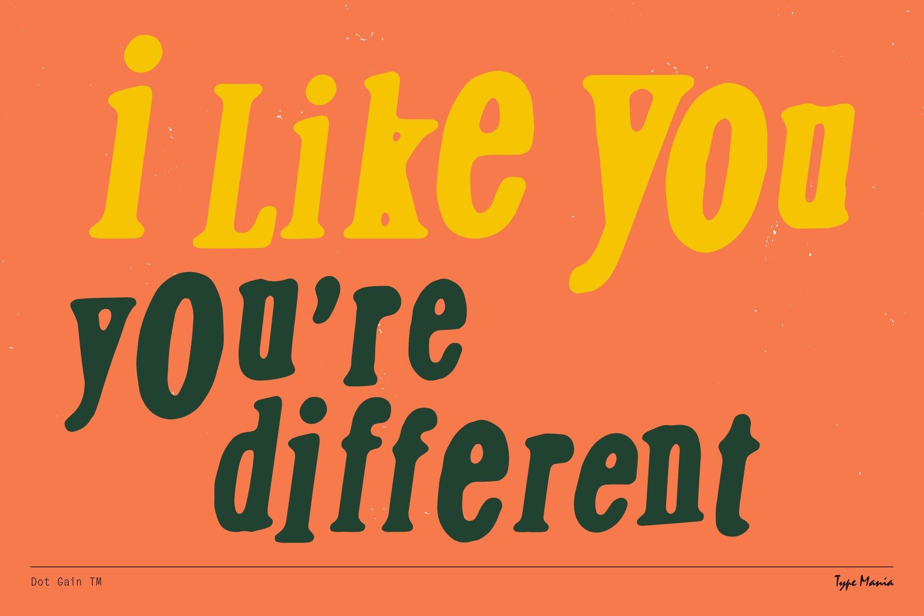 Get cozy with Dot Gain TM. Inspired by the gentle imperfections of yesteryears' printing presses, Dot Gain TMcaptures the essence of a bygone era with its scruffy appearance, yet remains unmistakably contemporary, offering a nod to the past with a modern twist (–‿♥)