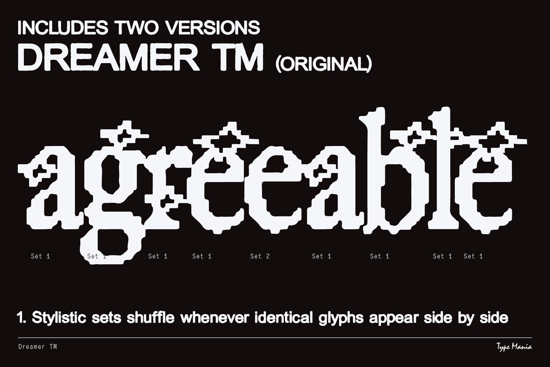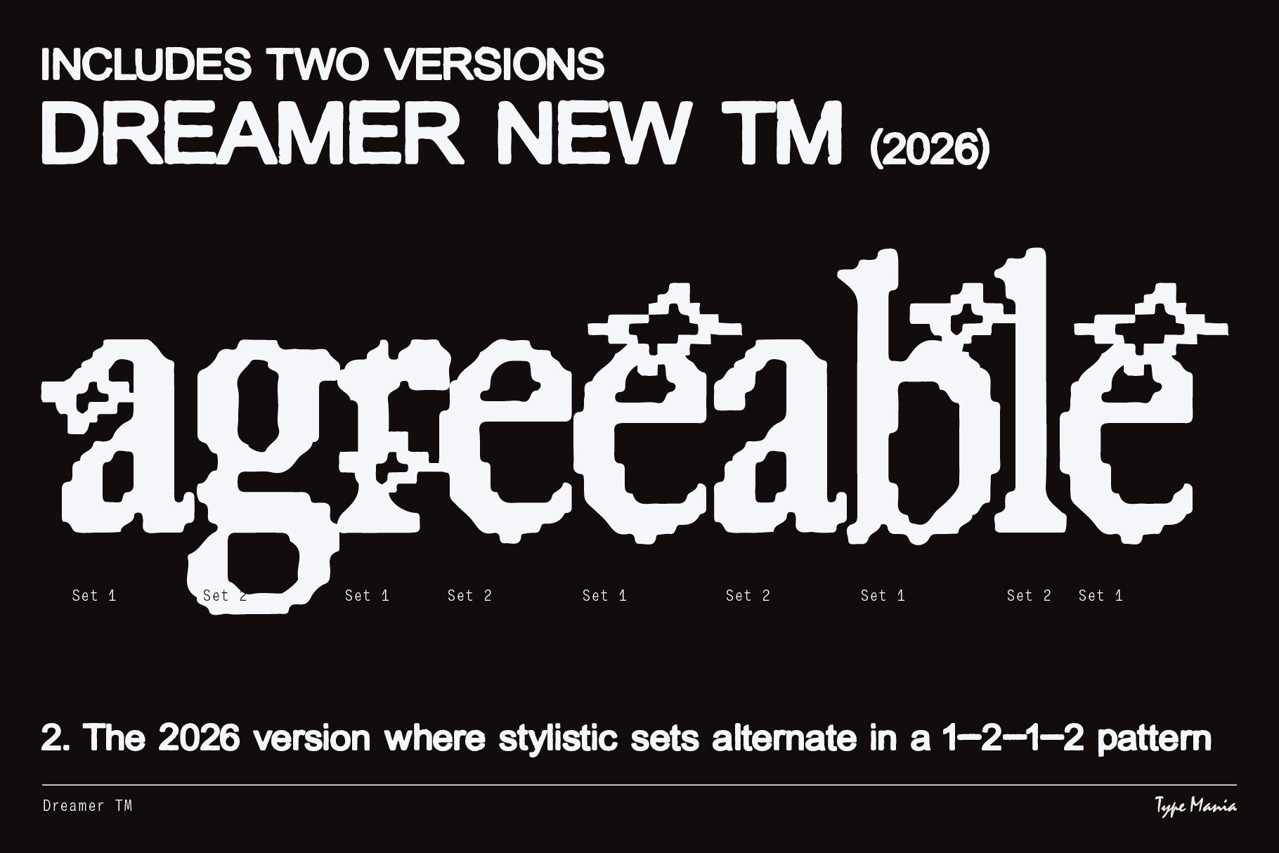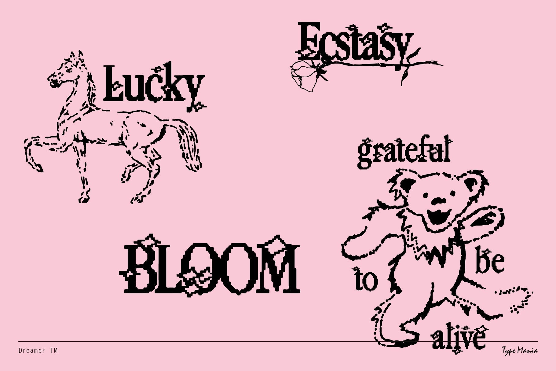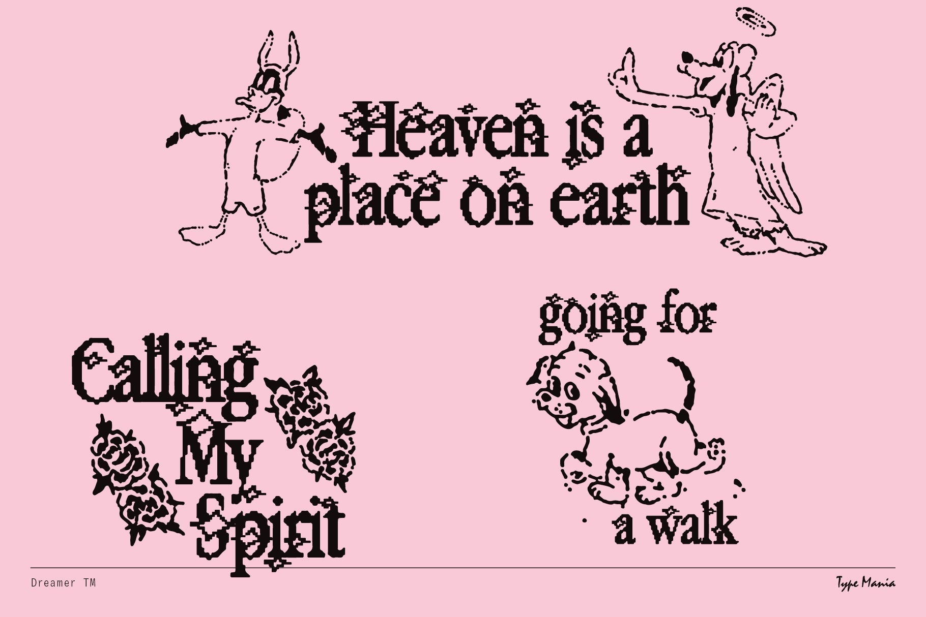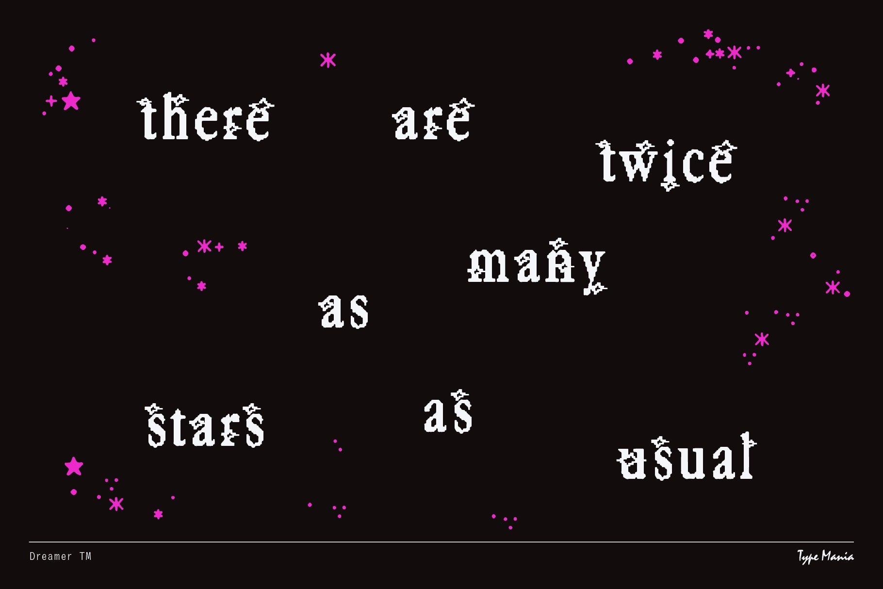 Drift into the fantastic world of Dreamer TM, our emotive serif font channeling the Y2K aesthetics. Whether you're designing a poster, creating a logo, or adding a nostalgic touch to your branding, Dreamer TM lends an edgy twist to your project ⋆𐦍.ೃ࿔*:・