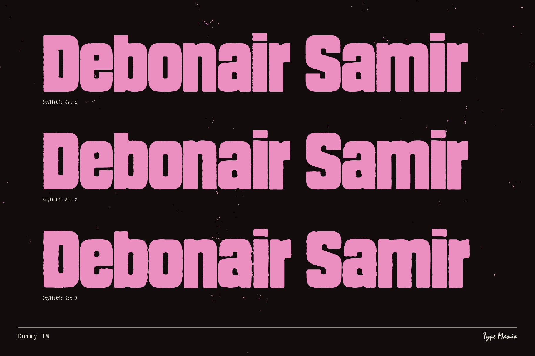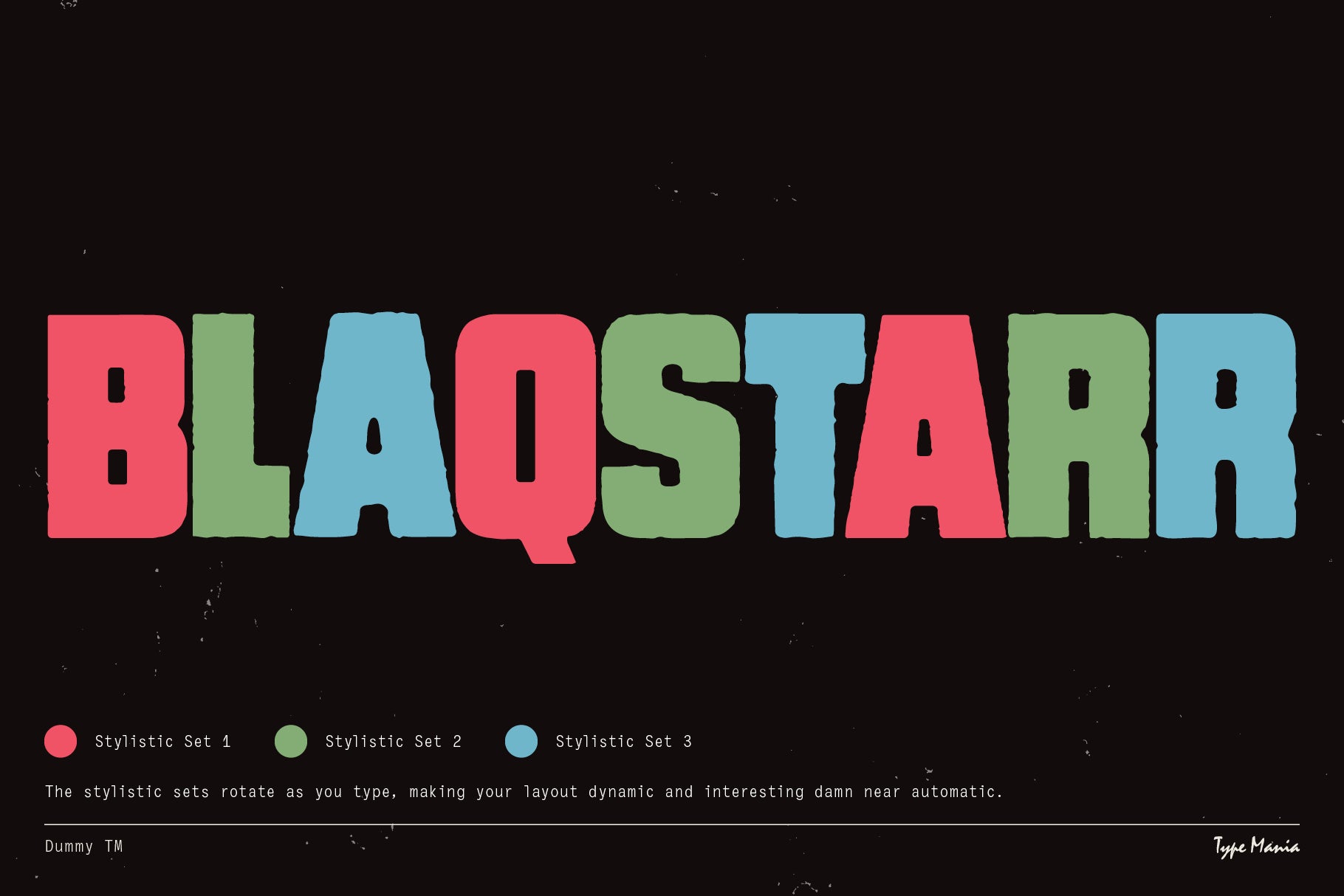 Dummy TM is your go-to when it comes to heavy distressed type. The font includes 3 unique stylistic sets that rotate automatically as you type making the designer's job that much easier. Perfect for your street smart flyers, record covers, t-shirt prints, and whatever else you need. Enjoy, you big dummy! www.tinyurl.com/58bubcet