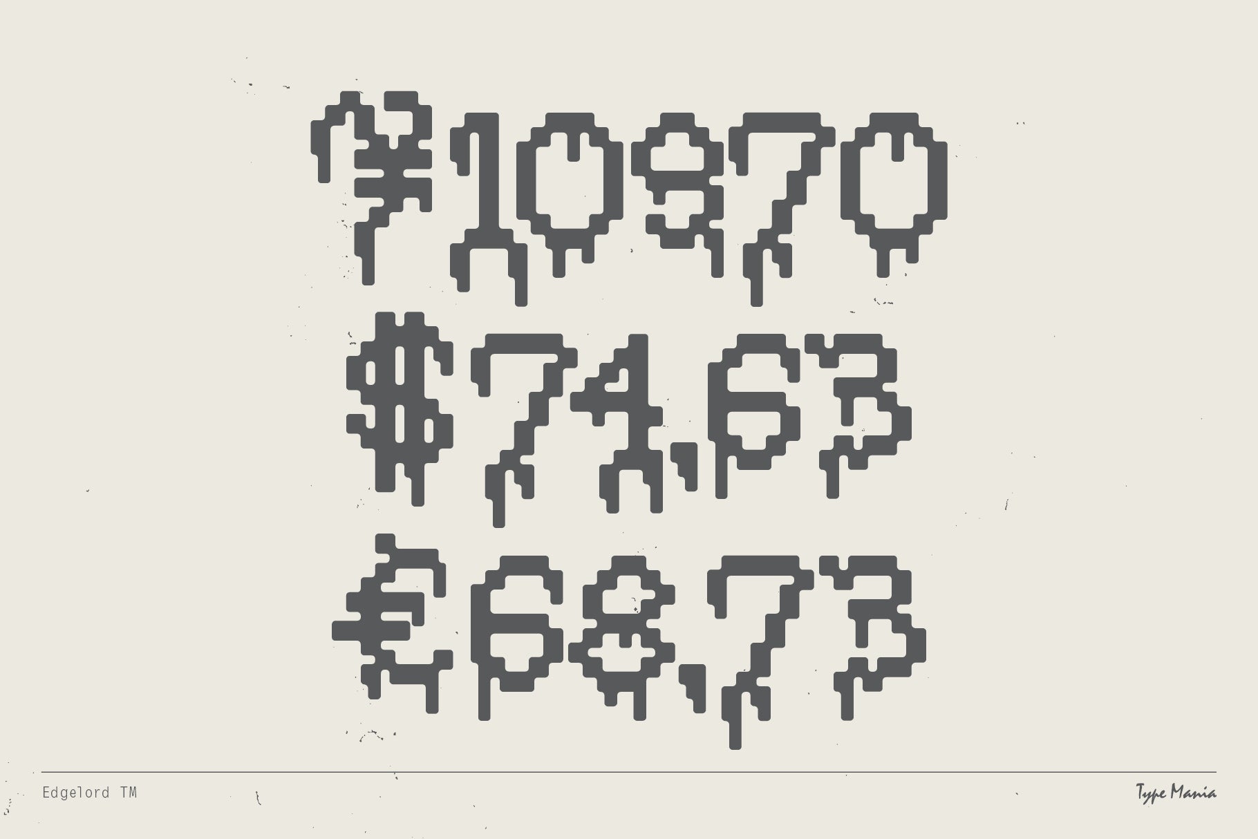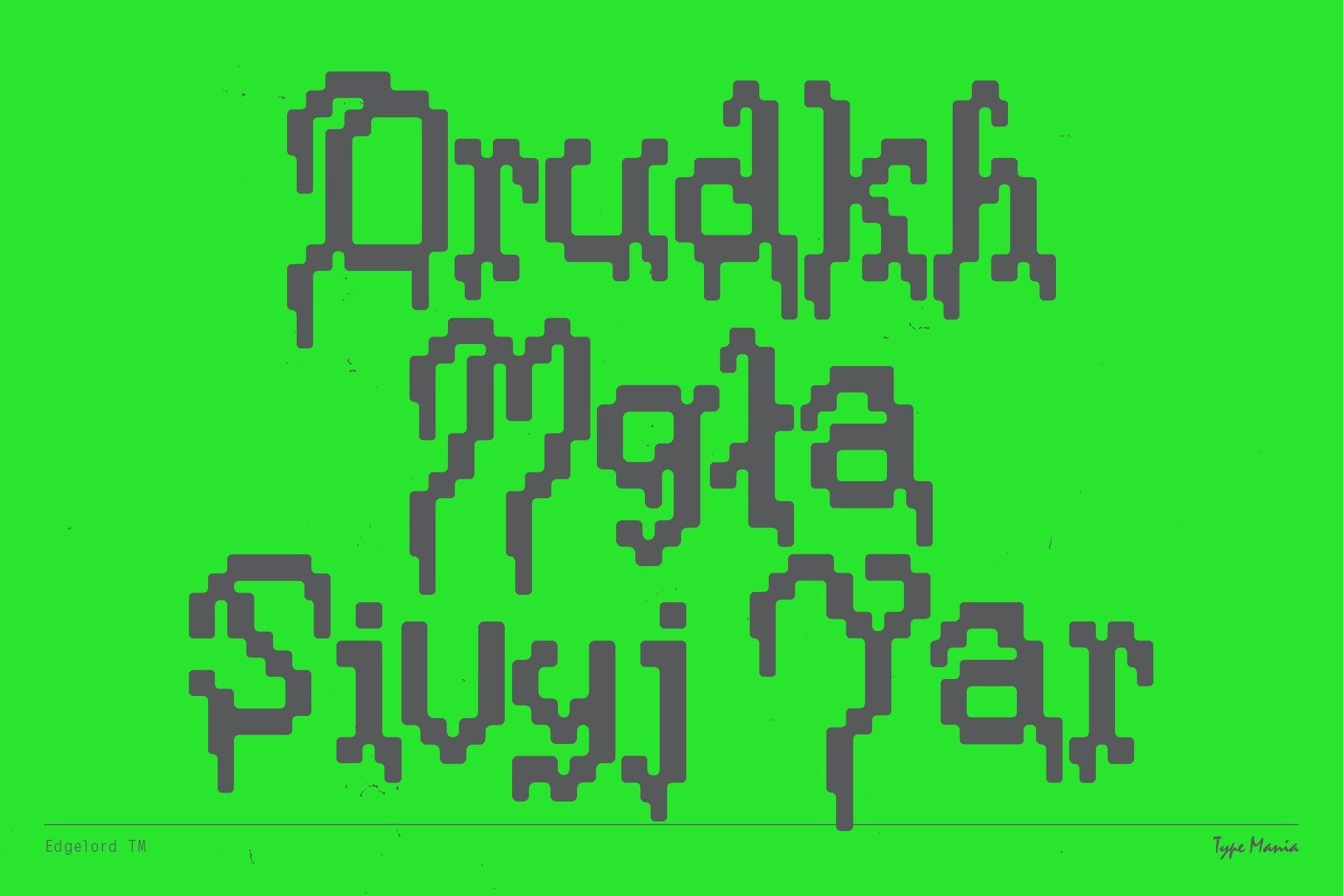 Edgelord TM blends medieval typography with 8-bit aesthetics, creating a typeface that stands out. Good for branding, editorial, a flyer for that lo-fi house party at yo mama's basement... Give it a try ⚔️