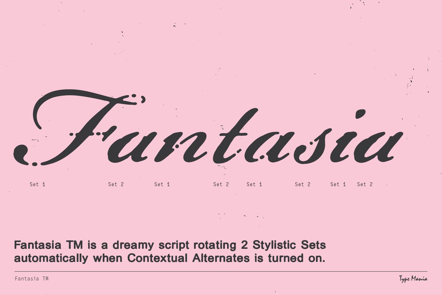 Fantasia TM is a script font treading the tightrope between edge and elegance. Its curves feature a worn texture, and the rotating stylistic sets guarantee an organic look & feel. Ideal for designs that need character without polish ‧₊˚ ☁️⋅♡𓂃 ࣪ ִֶָ☾.