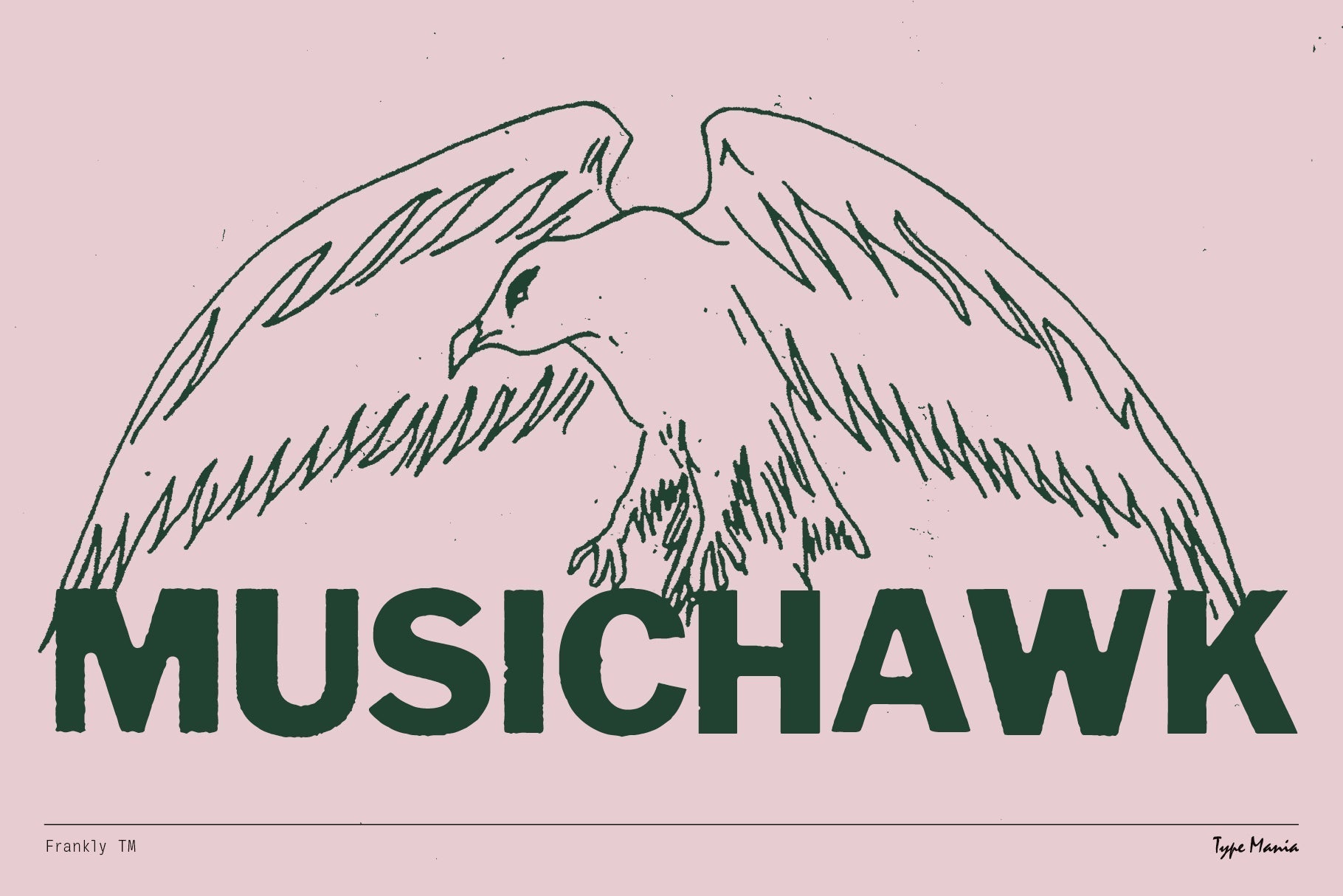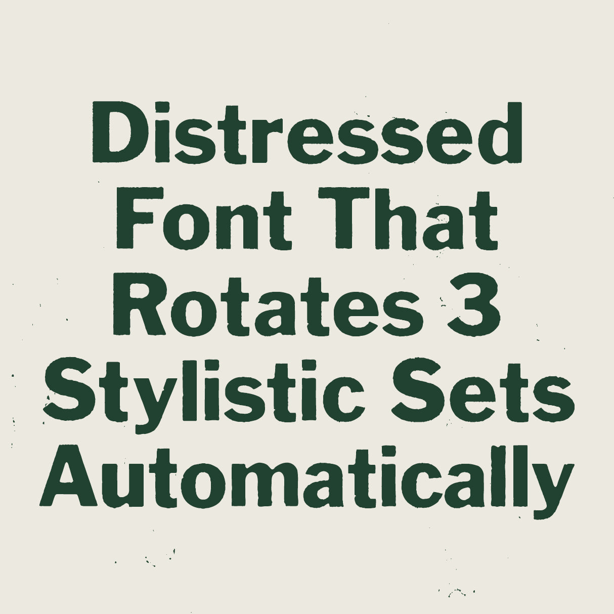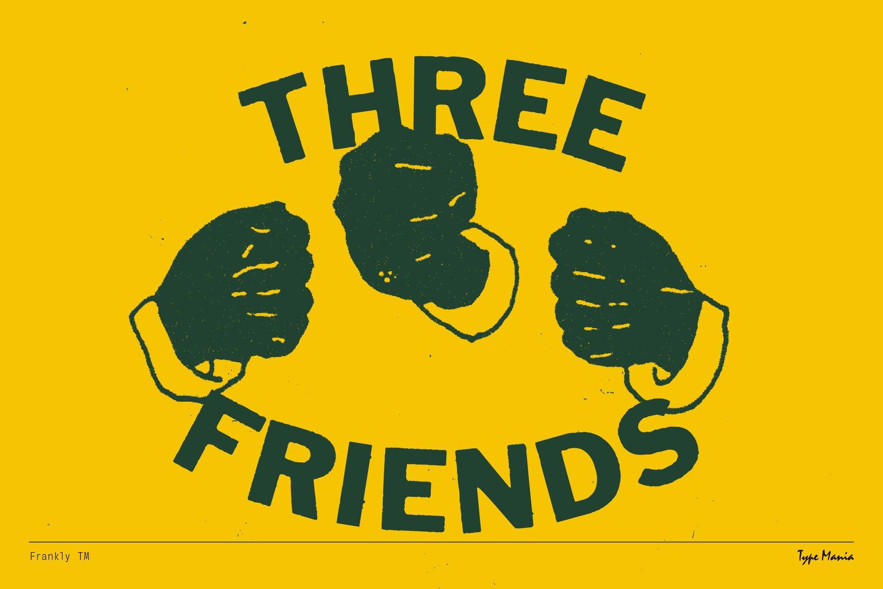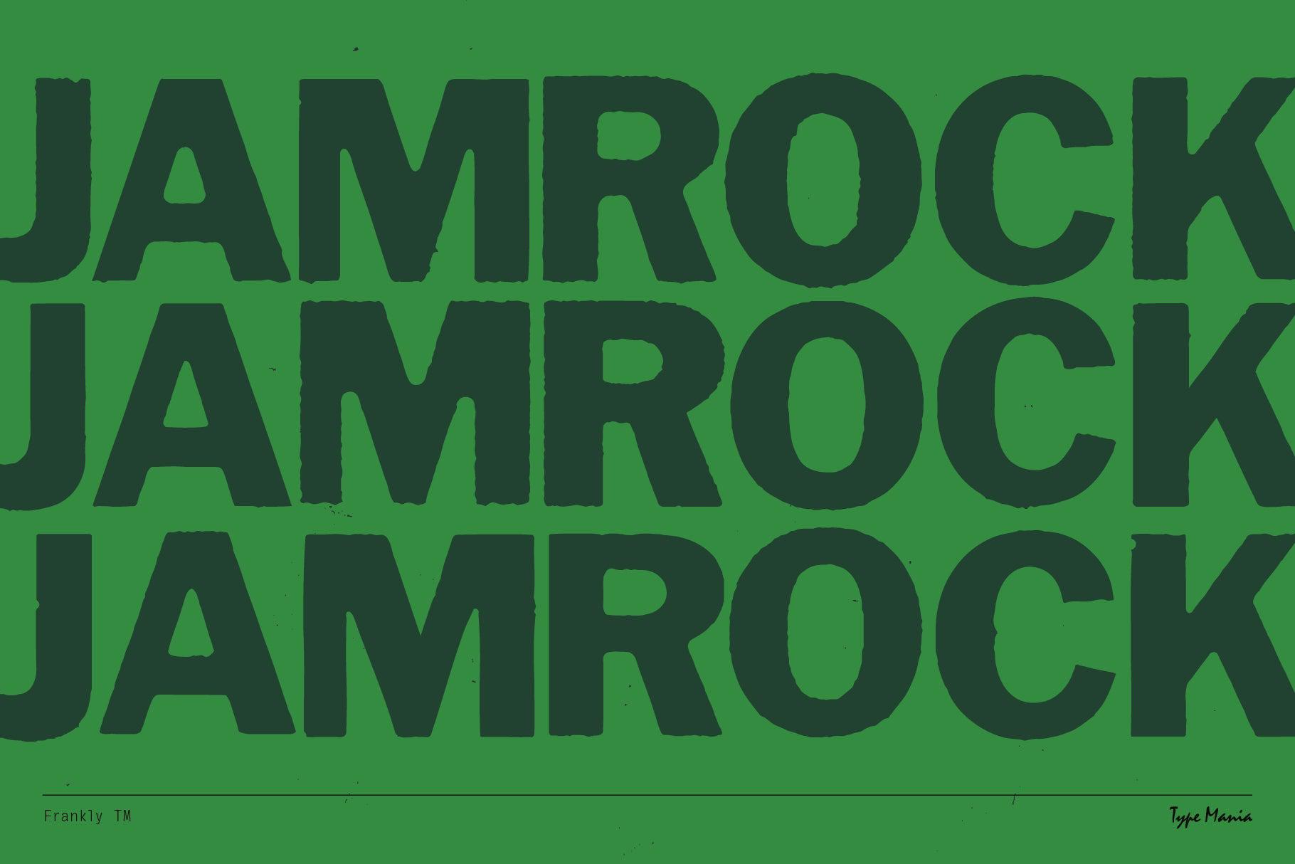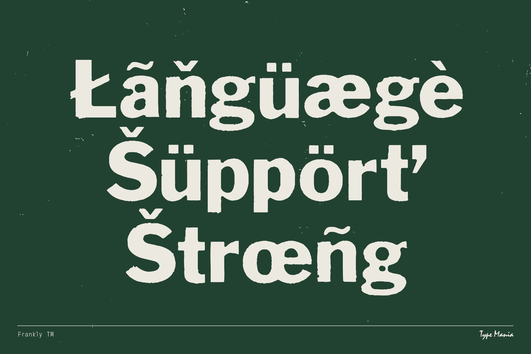 Frankly TM. With three stylistic sets rotating automatically (when contextual alternates are turned on), the typeface naturally mimics the subtle imperfections of misaligned offset printing. Perfect for headlines, packaging and branding (and reggae 45s), Frankly TM adds a raw, tactile quality to your designs.