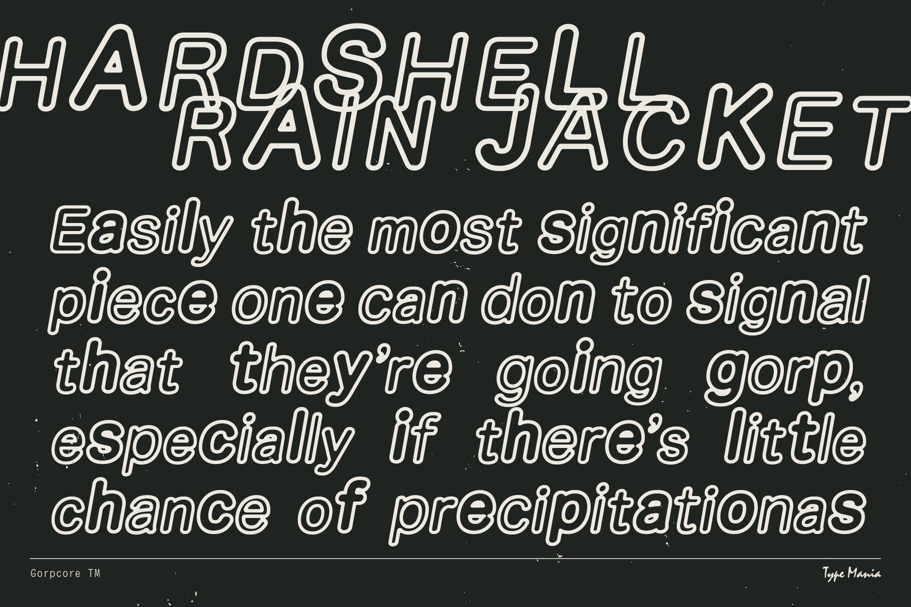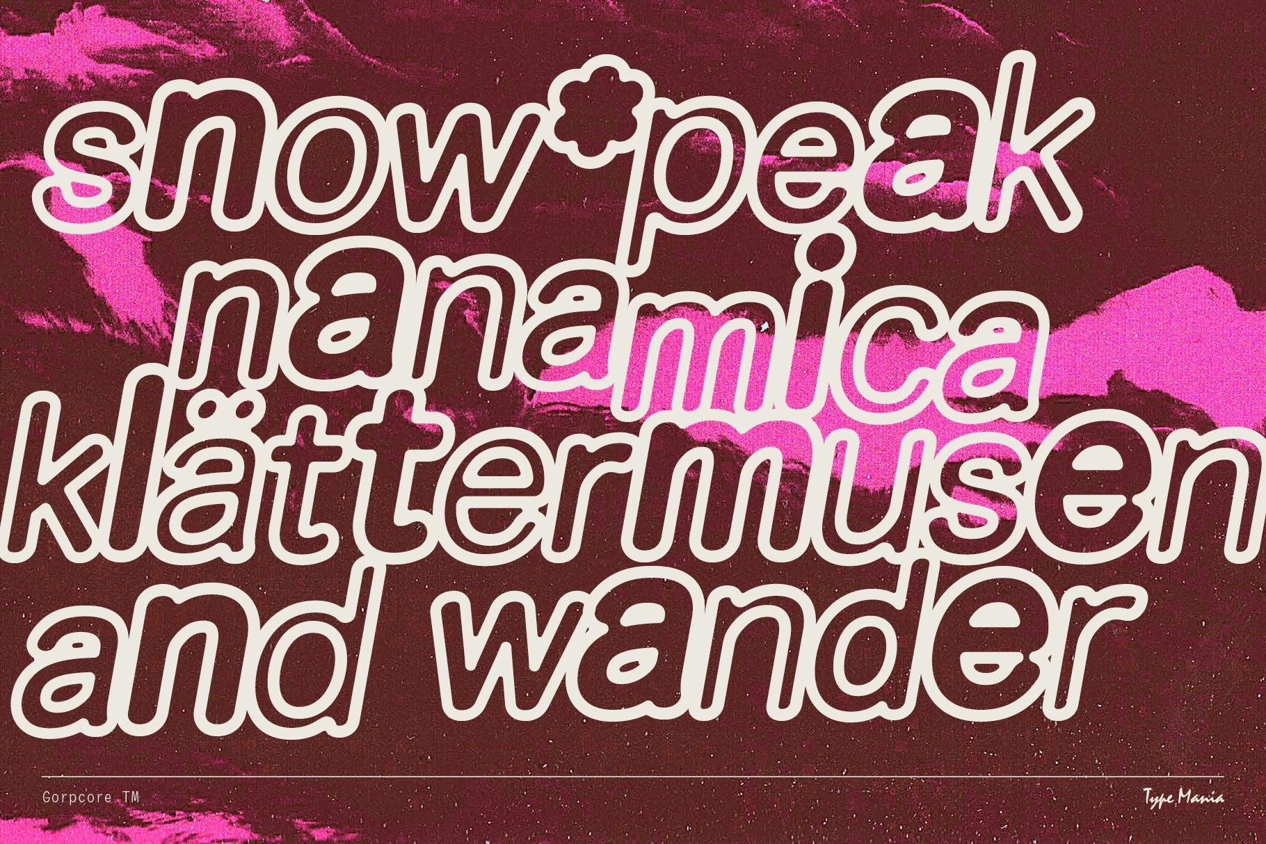 Discover Gorpcore TM, the typeface that captures the rugged charm and functional elegance of gorpcore aesthetics. Good for flyers, posters, social media campaigns, branding – what have u. Whether you're scaling peaks or navigating city streets, let Gorpcore TM be the compass that guides your creative journey.