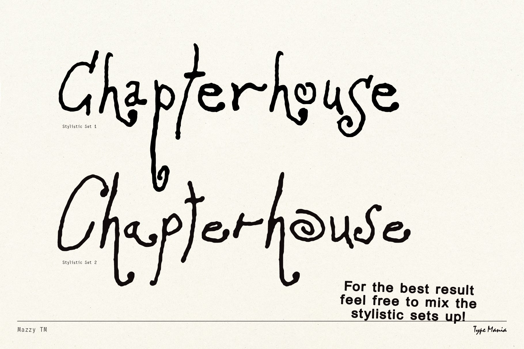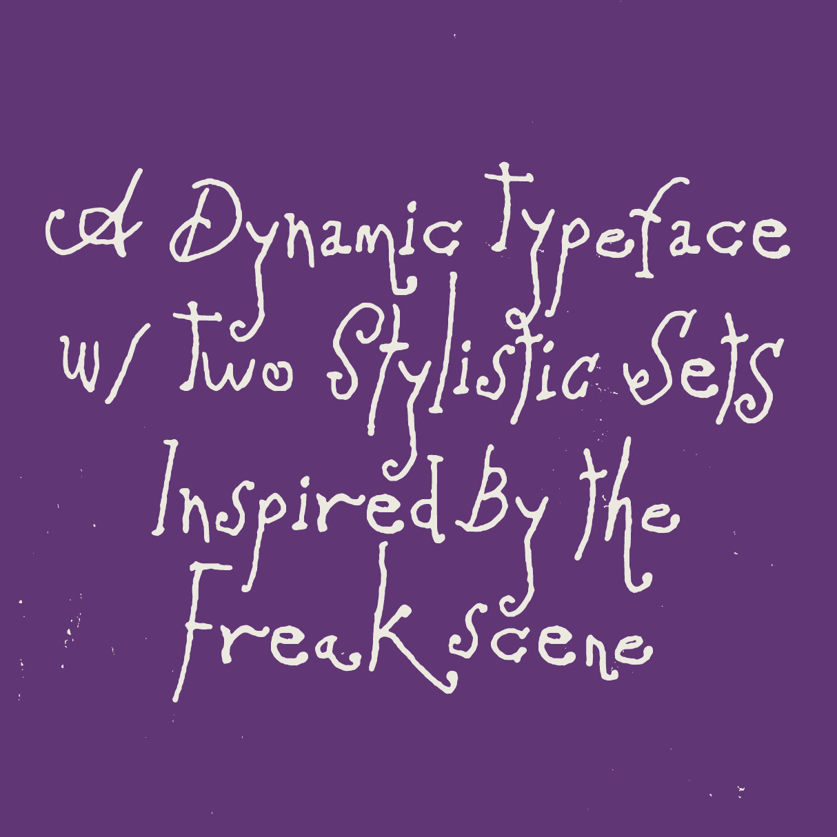 - Includes two versions of the font: 1. Stylistic sets shuffle whenever identical glyphs appear side by side, 2. A new version where stylistic sets alternate in a 1–2–1–2 pattern, when the Contextual Alternates is turned on.