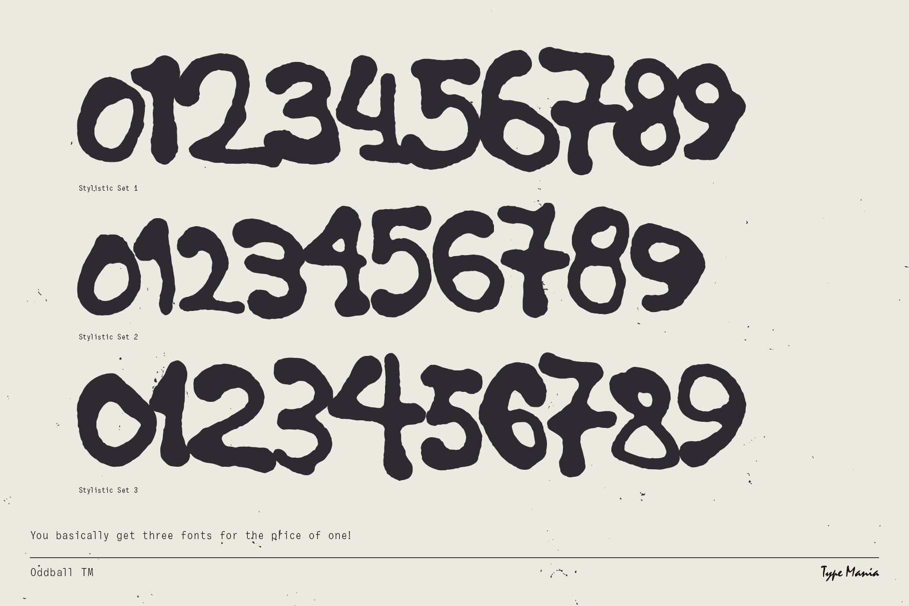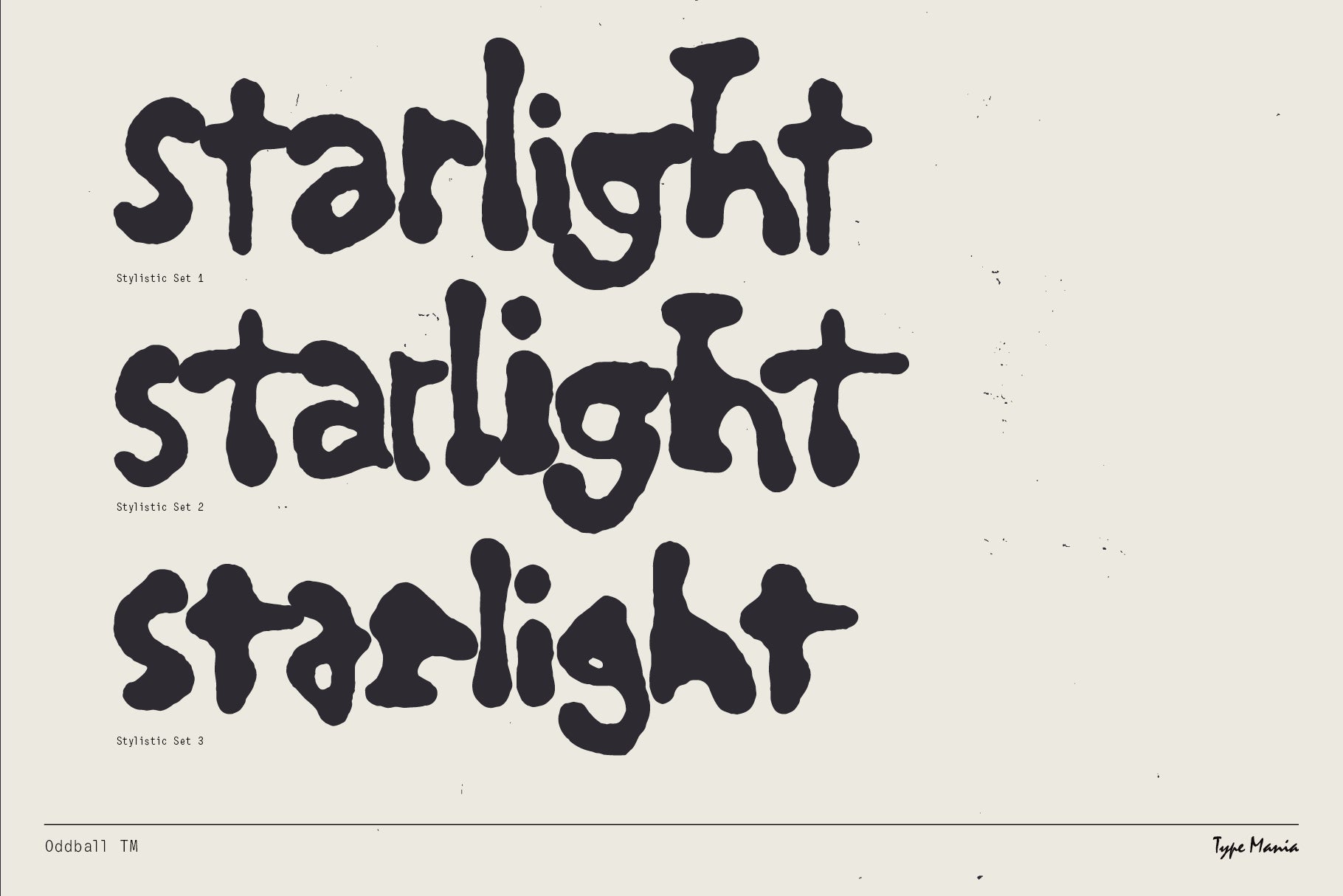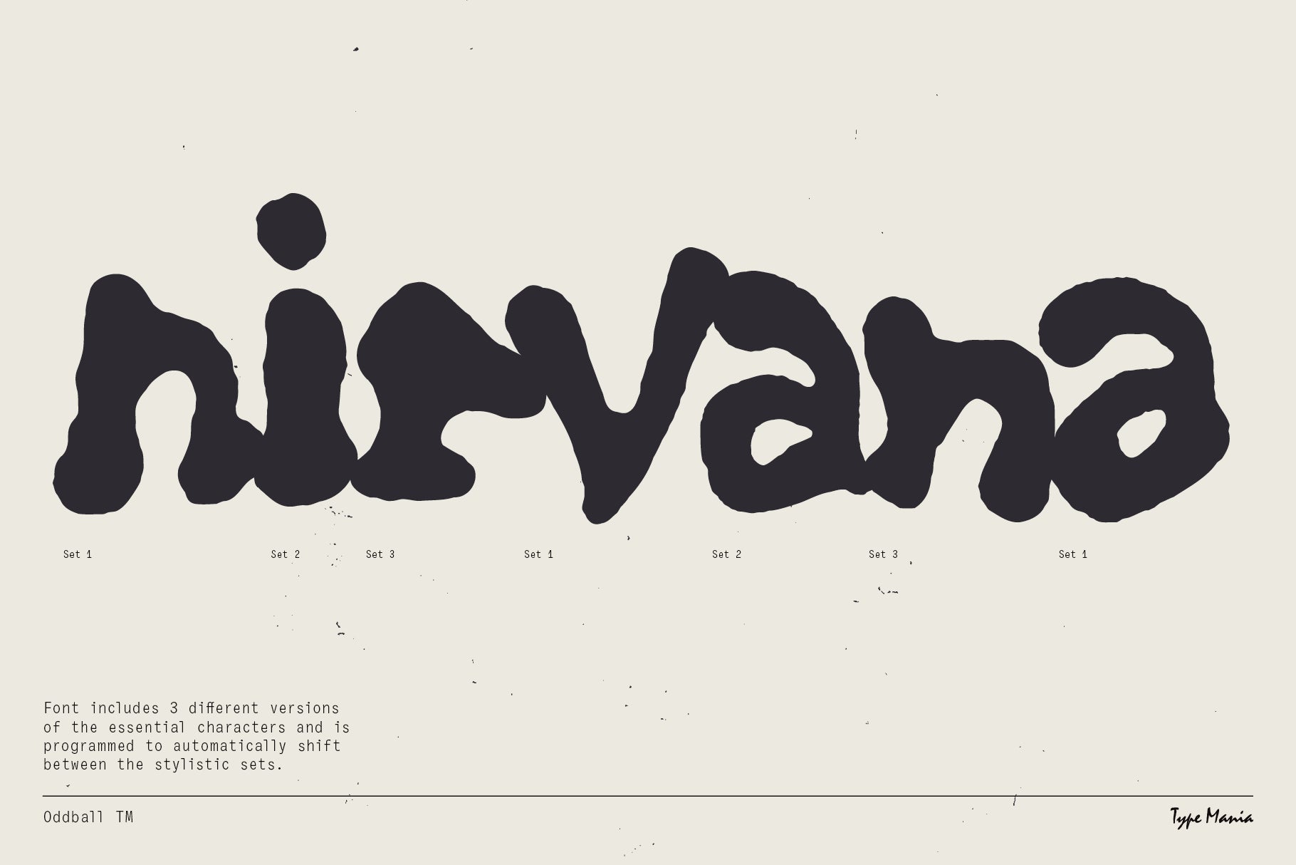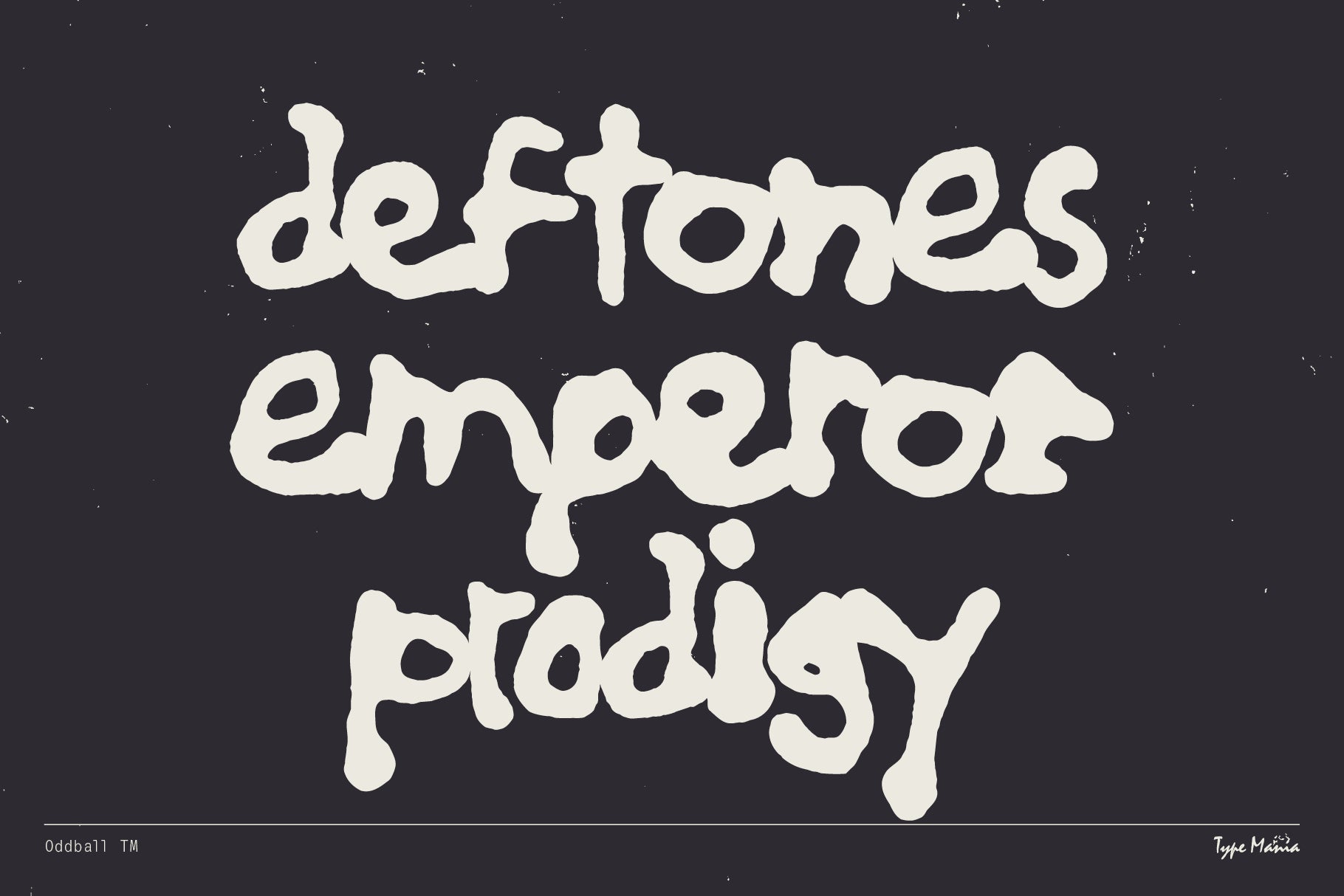 Check out Oddball TM, the blob-y handwritten font delivering hard on the 90s vibes. Perfectly imperfect, just like your favorite vintage band t-shirt. Get in where u fit in and remember: bad attitude keeps you young.