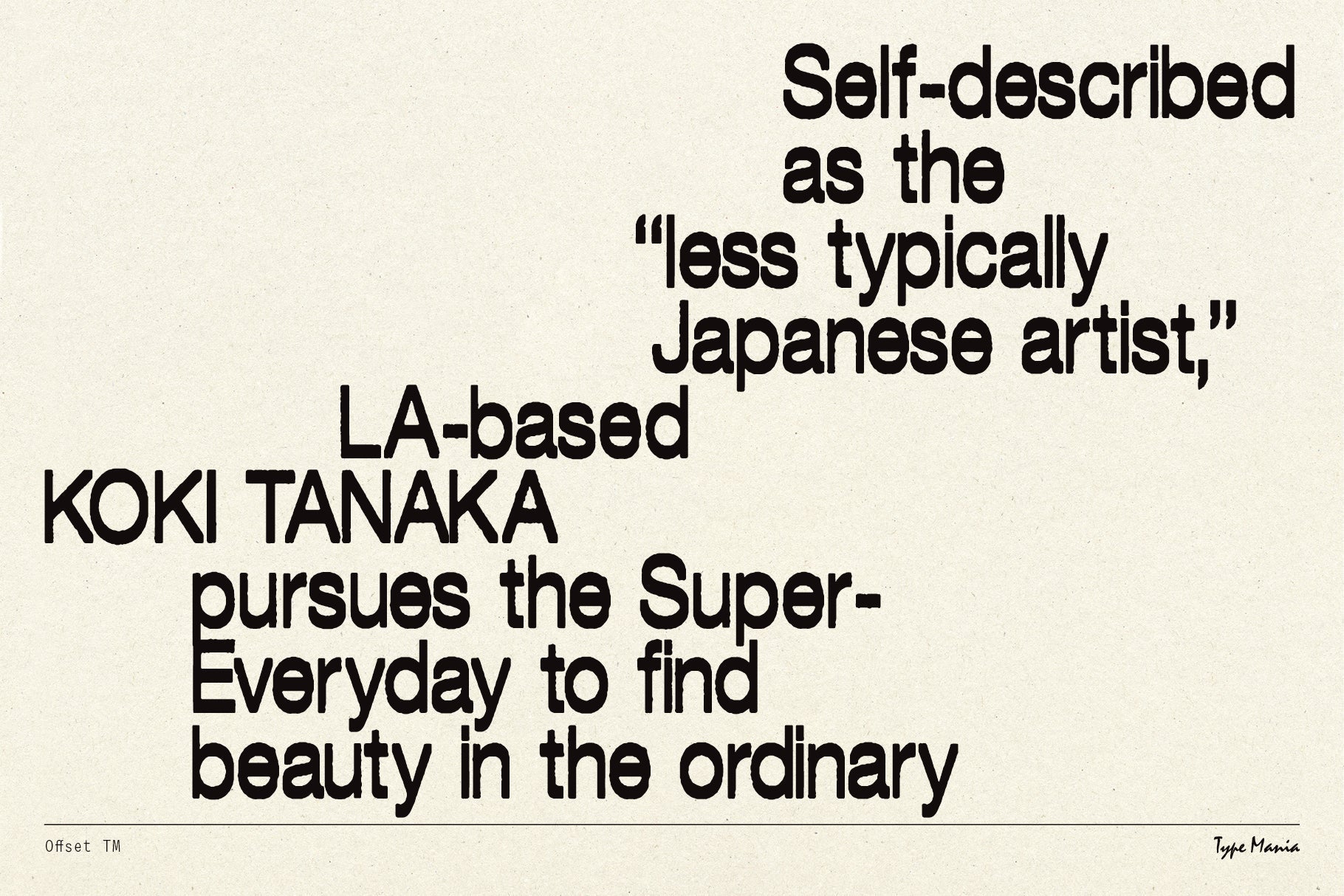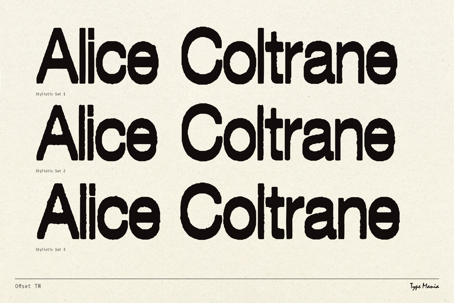 Introducing Offset TM. With 3145 lines of code it's a dynamic typeface that blends rugged aesthetics with innovative design features. This display font is not just visually gripping; it boasts three stylistic sets that automatically shuffle, adding character to your designs with ease.